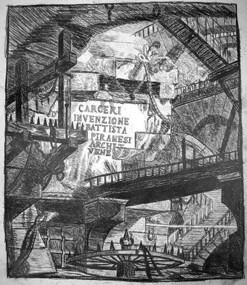 [Image: Piranesi’s prison fantasies – automated environments of drawbridges and wheels, arches and guardless vaults.]