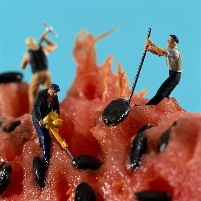 I love this, especially the watermelon one. Small-scale sculpture gets no respect, unless it’s jewelry or maybe the atomic-level sculpture that nanotechnologists make, and even that is just because it’s novel.