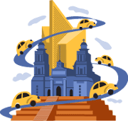 Overwhelmingly (if unsurprisingly), these graphics – like urban coats of arms for the 21st century – choose landmark architectural sites and streetscapes for their centerpiece.