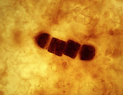 [Images: Fossilized cyanobacteria from Bitter Springs, Australia; and nonfossilized cyanobacteria].