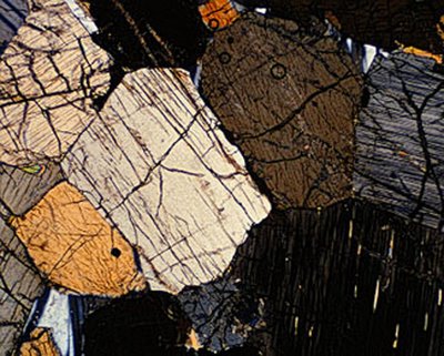 So I was pointed to a website, did some research – including petrographic imagery at Humboldt State University, a Parisian Atlas minéralogique, and some “plutonic microtextures” at UNC-Chapel Hill – and it’s true: you can make your own Mothlight using slices of bedrock. The continental plates as a kind of underground Hollywood. Film in mineral form.