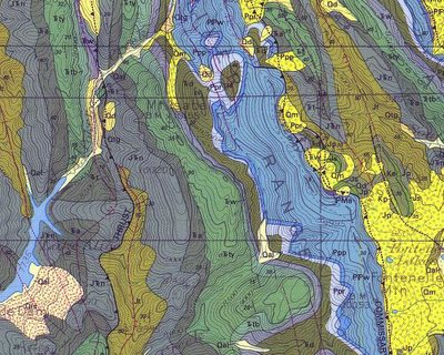3. First time on this site, but reading some of the entries, you definitely have a burgeoning curiousity to learn more about Geology! These geologic maps are fairly normal to me. I still think they’re gorgeous (and I too have a map fetish) but with a couple geology courses (take an intro course and then a Structural Geology course and then a field course if you want 3) and you could understand and interpret what all this means.