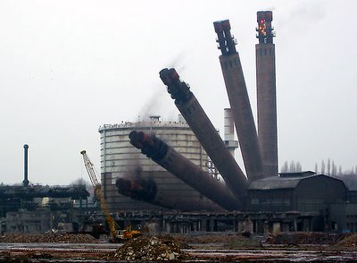 Then there’s the closing of the Phoenix Steel Mill, in Dortmund, and the ensuing demolition of its so-called Hoerde Torch, which Hebig also captured on film.