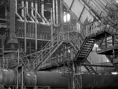 [Image: Haiko Hebig, inside one of the blast furnaces, Phoenix Steel Mill, Dortmund].
