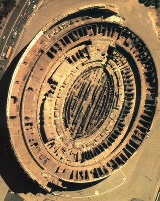 [Image: The Roman Coloseum, photographed from space].