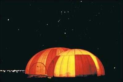 You could go Robert Smithson on the world, and tow your dome home round the American highway system… A kind of performance art/arterial cholesterol piece. The becoming-arterial of earthworks-cholesterol.
