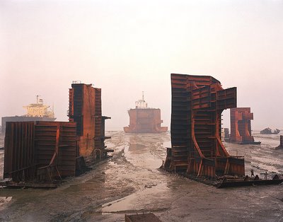 (With thanks to Leah Beeferman for the tip, and with the oddly synchronicitous realization that gravestmor just linked to Burtynsky’s shipbreaking photos, too…)