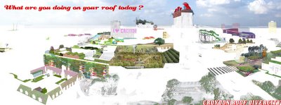 – which radically rethinks the landscape of Croydon’s roofs (and sounds really, really fun): “Taking the flat roofs of Croydon as our testbed,” they write, “we propose a new roofscape for the city – beaches, ice rinks, golf courses, allotments, skateboard parks and pasture refresh Croydon’s tired concrete.” How about a shooting range? (For more on green roofs, see Inhabitat).