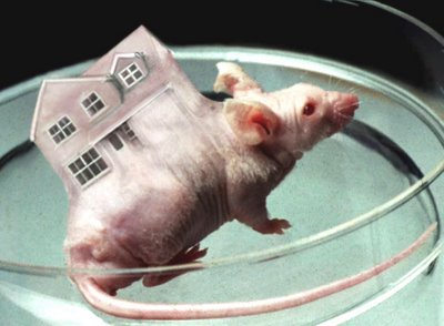 [Image: What would happen, I suppose, if Toll Brothers went into genetic engineering: it’s Geoff Shearcroft‘s “Grow Your Own” – probably not what New Scientist had in mind… but could you grow a whole city from the spines of cloned mice? Would anyone ever live there? What would a house fire smell like…?].