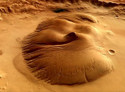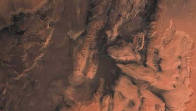Meanwhile, the camera scrolls across vast expanses of martian landscape subtly transformed by robot activity. Enormous expanses of sand, sorted into light and dark patterns, heat differentials driving underground CO2 steam engines to refill the batteries of robot society. Mining operations full of labyrinthe, ahuman geometries bringing raw materials to the factories where new robots are given life. Generations of robots of continuously-evolving design succeeding, self-organizing, cannibalizing each other. Strange splinter robot societies evolving in isolated environments. Easter island explorer robot statues in the sand. Cities of robots engaged in mysterious tasks.