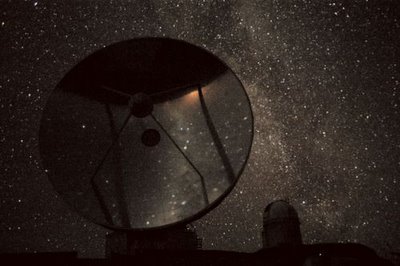 [Image: The Milky Way reflected in the dish of a derelict telescope, left unused and eroding in Chile’s high Atacama Desert. Perhaps this is what night will look like in 10,000 years, after bird flu and nuclear terrorism, war and water shortages, have reduced humans to a few breeding pairs in the Arctic: a landscape of ruined pavilions once dedicated to space – Ballard’s “deserted planetarium among the dunes” – beautifully lit by nothing but stars].