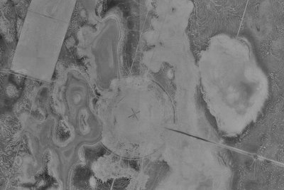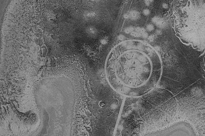 [Images: Landscape design through interventionist Aristotelianism (action-at-a-distance): Utah’s test bombing ranges. You need airborne explosives that inflict damage in the exact patterns of the royal gardens at Versailles. The Air Force Corps of Landscape Engineers. Launch missiles at the moon and Angkor Wat appears inscribed into the lunar surface. You bomb Kew Gardens – and it turns into Longwood Gardens. Bombing landscapes with new landscapes. (These photos via Pruned – via Polar Inertia. See also: Tree Bombs and Digging with Bombs)].