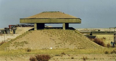 – built into the landscape of northern France; you can read Paul Virilio’s now somewhat legendary exploration of abandoned WWII landscape architecture, Bunker Archaeology; and you can take a brief look at the observations made here, as part of a larger architectural travelogue that begins in London’s Barbican.