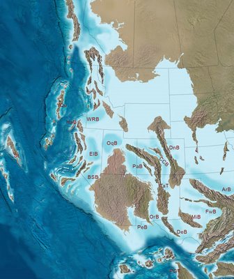 [Image: The present tectonic structure of North America, mapped by Ron Blakey, Professor of Geology, Northern Arizona University].