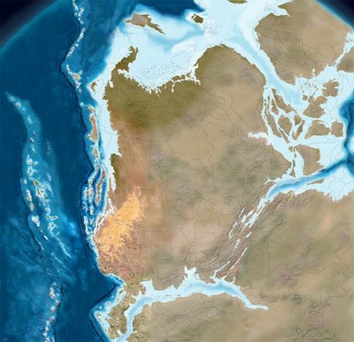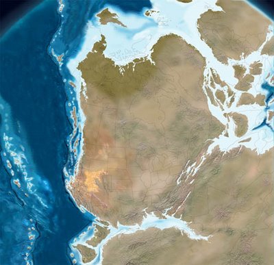 [Image: The southwestern coastal archipelagos of North America, 310 million years ago; map by Ron Blakey].