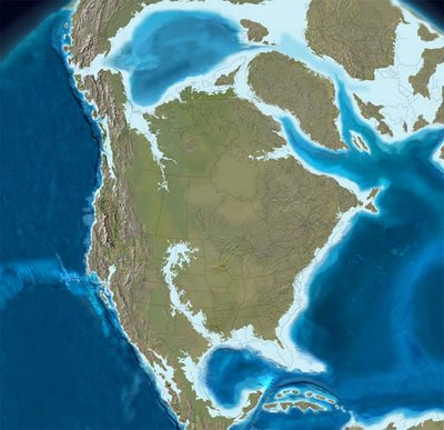 Now the North American inland sea has sealed up, and a riverine bay several orders of magnitude larger than the Mississippi or the Saint Lawrence flows southeast across Texas.