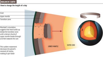 According to New Scientist, massive avalanches of molten rock inside the earth’s mantle may affect the speed of the earth’s rotation – briefly accelerating the planet. “Like an ice skater pulling in their arms,” these internal landslides shift mass towards the earth’s core, making the earth spin faster.