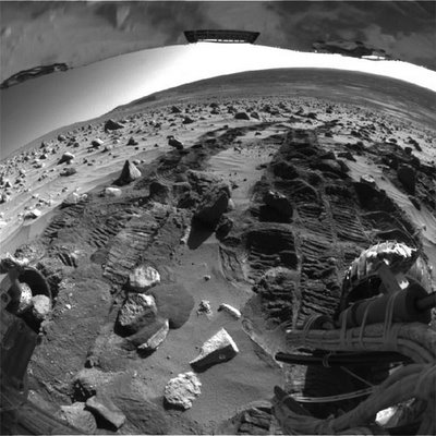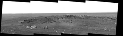 [Images: As if Kazimir Malevich had been reincarnated on Mars to take panoramic geological photography – a new Suprematism of alien terrain – these images are all strangely framed black and white shots like filmstills, taken by NASA’s Spirit rover; courtesy of NASA/JPL-Caltech].