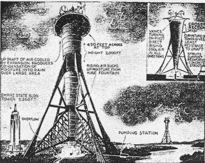 You basically build one of those things at a geo-atmospherically strategic location; you make youself a cup of tea; their height and geometry trigger downdrafts; then the internal chambers cause condensation of vapor from air. Thus, an air well. The end of drought through tropospheric riverways.