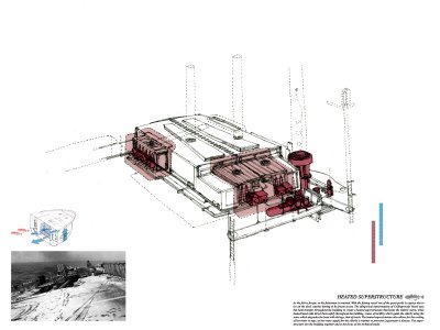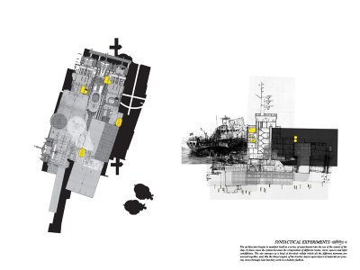 “The scheme is a retirement home for elderly fisherman that also houses a working men’s club for members of Newcastle’s fishing community,” Pearson writes. “As a reflection of the separation and torpor of this unique society, the scheme takes the notion of the ship in an architectural context, to create an ersatz environment which interacts with the city around it as if it were a dry docked vessel. The environmental technologies and the ways in which the notional ship has been translated into an architectural system are the focus of this study.”