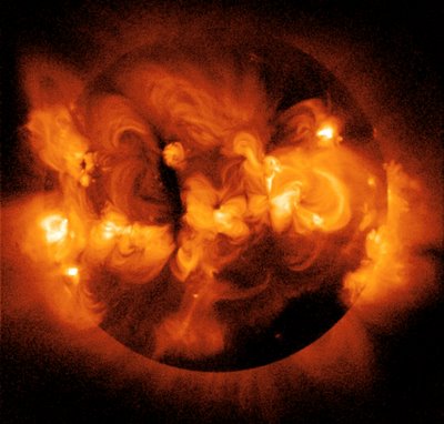 Whilst once again finding myself on the same intellectual wavelength as Pruned‘s Alex Trevi, who posted today about the shimmering and explosive self-resurfacing outer loops of the sun, I spent yesterday evening copying down solar-descriptive quotations from an old book by Guy Murchie, called The Music of the Spheres.