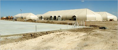 Between statelessness and Westphalian sovereignty you apparently get inflatable architecture, instant cities on the carceral edge between two systems of power: “As the Bush administration gets tougher on illegal immigration and increases its spending on enforcement,” the New York Times reported last week, “some of the biggest beneficiaries may be the companies that have been building and running private prisons around the country.”