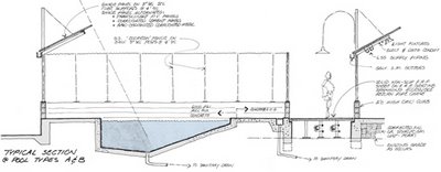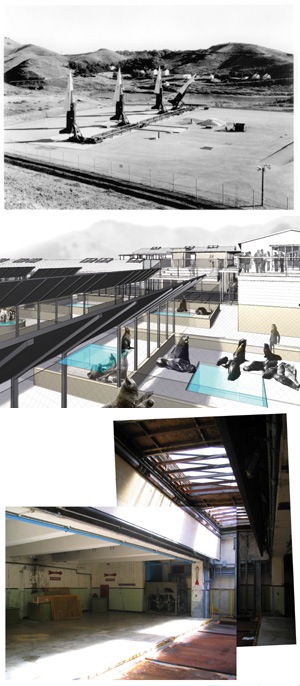 – where, for instance, we find the above diagram. “Because the center operates around the clock,” Architecture explains, “illumination for night had to be directed in a manner sensitive to the fact that animals in the bay use light for migration. A portion of the pools will always be shaded by overhead awnings – many of which will be lined with photovoltaic panels, thanks to a generous donor – giving the animals a choice of where to hang out, and cutting down on cooling costs.”