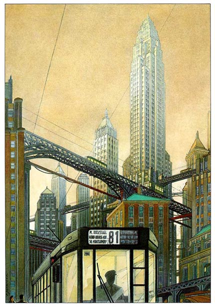 I was unaware of Obscure Cities until your post: the artwork looks much like the classic renderings of Hugh Ferriss (more here, here and here.)