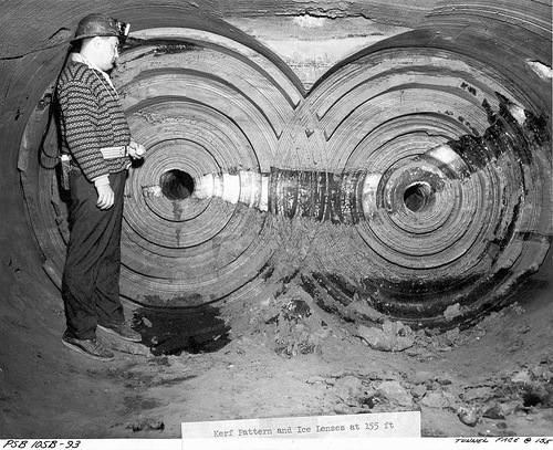Ice_Intrusion_155_ft_deep“Initial research” at the site “focused on developing new mining and tunneling methods for building underground facilities and foundations in permafrost. Special emphasis was given to tunnel behavior in permafrost, including deformation, natural air flow, feasible types of ventilation and thermal regime.”