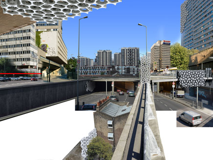 I like the idea of putting plants in each of the holes, bus shelters & cityscapes bedecked with greenery.