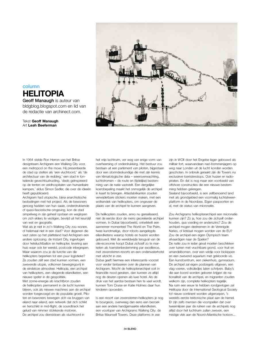The Archipelago was first published in Blend, however, a Dutch arts & culture magazine; and, having recently gotten hold of some PDFs from Blend‘s design team, I thought I’d post a quick glimpse of the page spread. (Sharp-eyed readers will notice that the text is in Dutch).