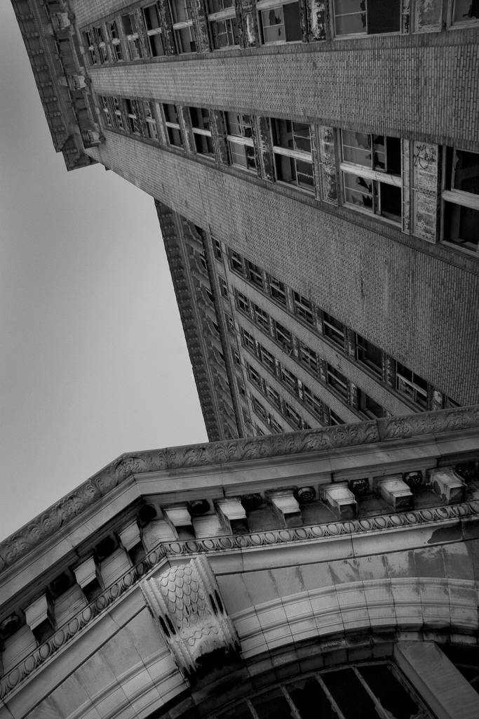 [Image: Geoffrey George takes us on a stroll through Detroit’s Michigan Central Station, a building both abandoned and unfinished, in this Flickr set; the above image, so wonderfully skewed and angular, is the strongest of the lot – in fact, it’s rather hard to stop looking at].
