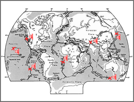 Dombois: “The sound of earthquakes at spreading zones differs much from earthquakes at subduction zones. Whereas earthquakes produced by plates that are drifting against each other appear as sharp and hard beats, an earthquake from a parting mid ocean ridge sounds more like a plop.”