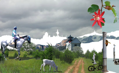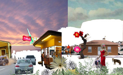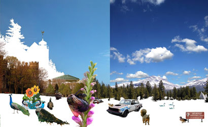 Arcadia by Invertebrate is a project “assembled from images that share the tag ‘arcadia’ in an online photo-sharing website.” Effaced, cropped, combined, and altered, the images then serve as surreal maps of earthly paradise: a stereotyped landscape of personal leisure, backyards, and harmless wildlife, all in the shadow of distant mountain ranges.