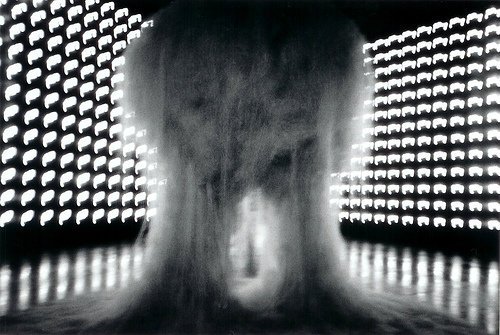 [Image: Resembling the birth, or perhaps death, of the universe under studio lights – or a black & white alternate ending to The Fountain – this is a sculpture by Michel Blazy from 5 Billion Years Later, at the Palais de Tokyo, Paris, photographed by booce. The image is best seen in its original size].