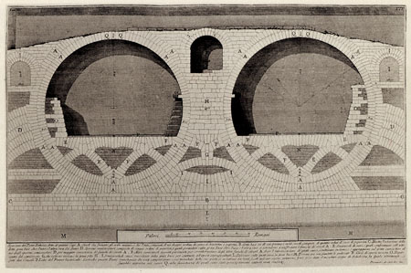 [Image: The interlocking circular network of compound arches beneath Rome’s Quattro Capi Bridge, engraved by G.B. Piranesi, patron saint of BLDGBLOG. Scanned from the insanely stimulating and highly recommended Complete Etchings].