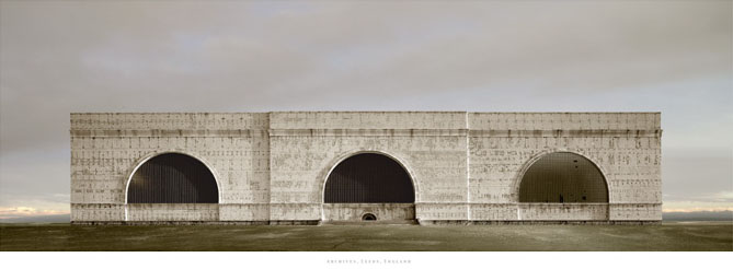 Zimmerman’s Landmarks of Industrial Britain, for instance, is “a photographic series of fictional public buildings derived from small scale architectural maquettes.”