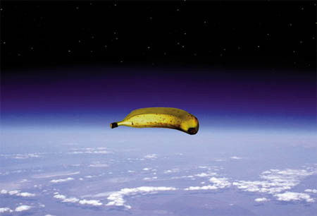 this geostationary banana is definitaly a message! i think as soon as it’s up there i’ll take a road trip and take pictures. it’s absolutly hilarious! somebody should have a fundraiser for them- if there isn’t one already, someone should start one.