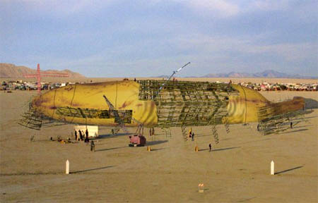 The banana, we read, “will float between the high atmosphere and Earth’s low orbit, being visible only from the state of Texas and its surroundings.” It will be 300m long, framed with bamboo, and filled with helium.