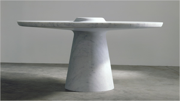[Image: A “lathed marble table” by Marc Newsom; image by Lamay Photo, courtesy of Gagosian Gallery, NYC].
