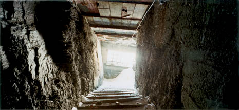 Crawling over to investigate, flashlight in hand, you realize it’s not a cave at all, but a manmade tunnel. And it extends downward, at a sharp angle.