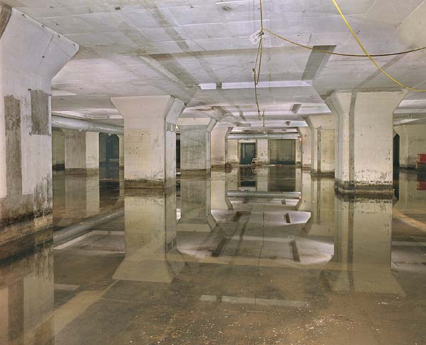 Fascinatingly, now that Station Z is militarily unnecessary – after all, today’s back-up British government appears to be the White House – the international photography firm Kodak has purchased the site. The above-ground buildings, however, were demolished in 1996, leaving these monolithic hollows in the darkness below: