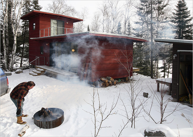 [Image: “Scott and Lisa McGlasson’s 700-square-foot weeHouse from Alchemy Architects in northern Minnesota.” Photo by T.C. Worley for The New York Times].