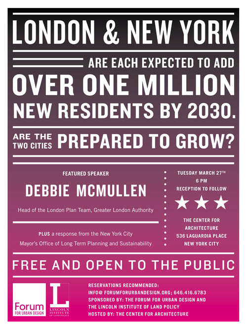“London and New York are each expected to add over one million new residents by 2030,” the Forum tells us. “Are the two cities prepared to grow?”