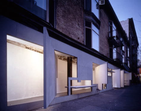 [Image: New York’s Storefront for Art and Architecture, with its famous hinged facade, designed by Steven Holl and Vito Acconci].