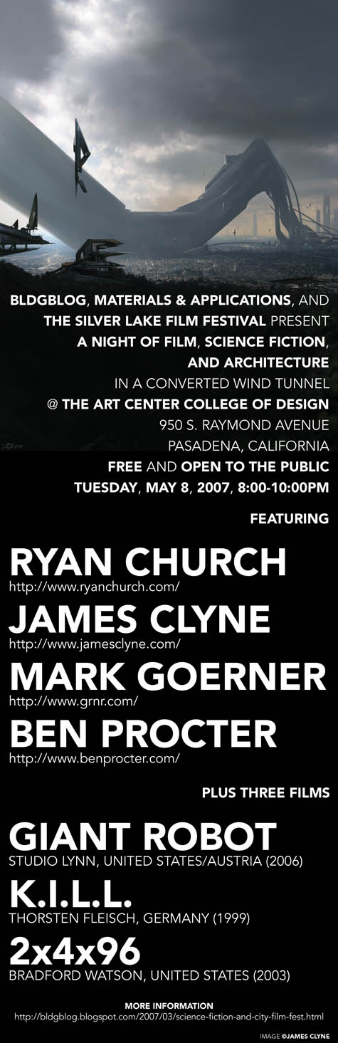 geoff, first of all, let me say great event last night (despite the technical difficulties). however, i was expecting a deeper discourse on the relationship between the architecture of the physical world and the architecture of science fiction and so, i was a bit disappointed. thanks for putting it together though. i’m looking forward to the 2nd part.