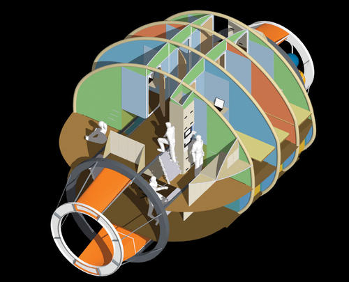 “interiors in space”? When I saw that I thought it was “inferiors in space”. Having lived a few situations run by military contractors and the DOD, it brought to mind that the final design situation will have to have seperate quarters for officers…and an “O Club”. Can’t have them fraternizing with the lower class…ooops, I meant enlisted folk.