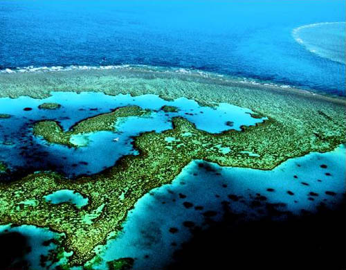 [Images: Japan’s Okinotori Islands, via the BBC, next to an unrelated image of a different reef; all reef images used in this post are from different locations].