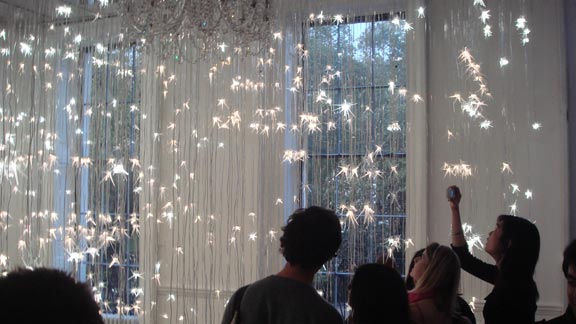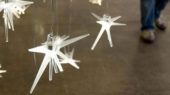[Images: Glimpses of the LightHive, an indoor constellation aware of those who view it. Image one, two, and three – and a lot more here].