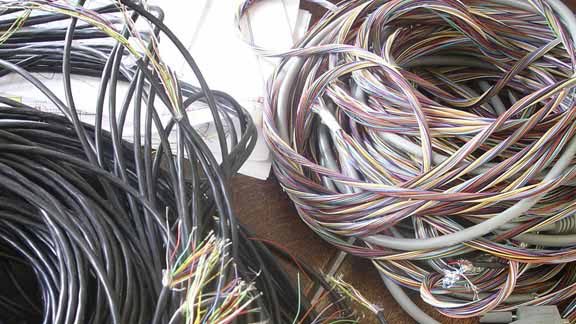 [Images: 7.5km of LED wiring plus “a last view of the lush multicoloured universe of RS232 DMX cables” required for the LightHive].